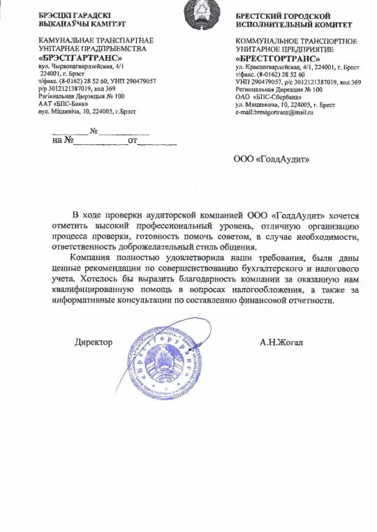 КТУП "БрестГорТранс" отмечает высокий профессиональный уровень и отличную организацию процесса проверки.
